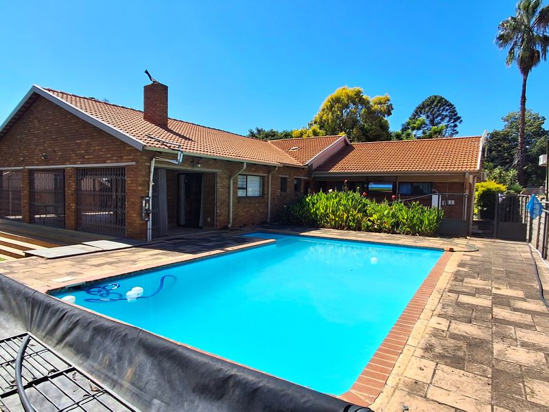 Entertain year-round on expansive 2,578 m² grounds with pool, lapa, and air-conditioned bar; solar power, self-contained flatlet, four garages and four bedrooms.