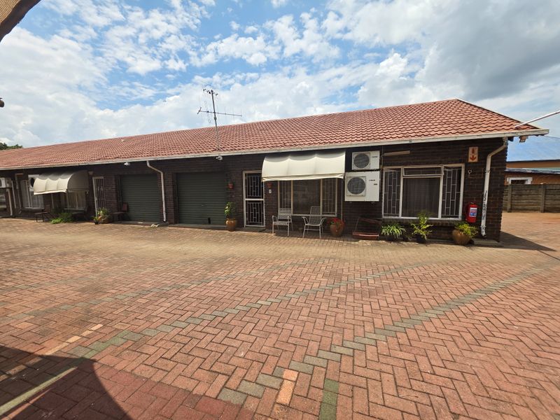 Prime, high-traffic corner in Rustenburg ideal for client-facing businesses, steps from public transport and on-pavement parking; flexible showroom and small workshop, with two bathrooms.