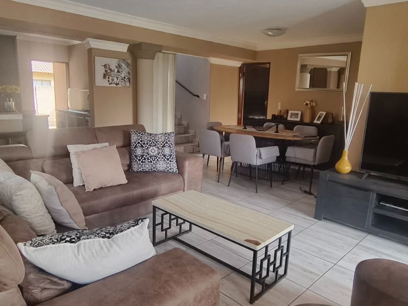 Family-focused living in tranquil Tlhabane West, close to schools and malls, featuring an open modern kitchen and solar-backed power supply; four bedrooms, 3.5 bathrooms, three covered parking.