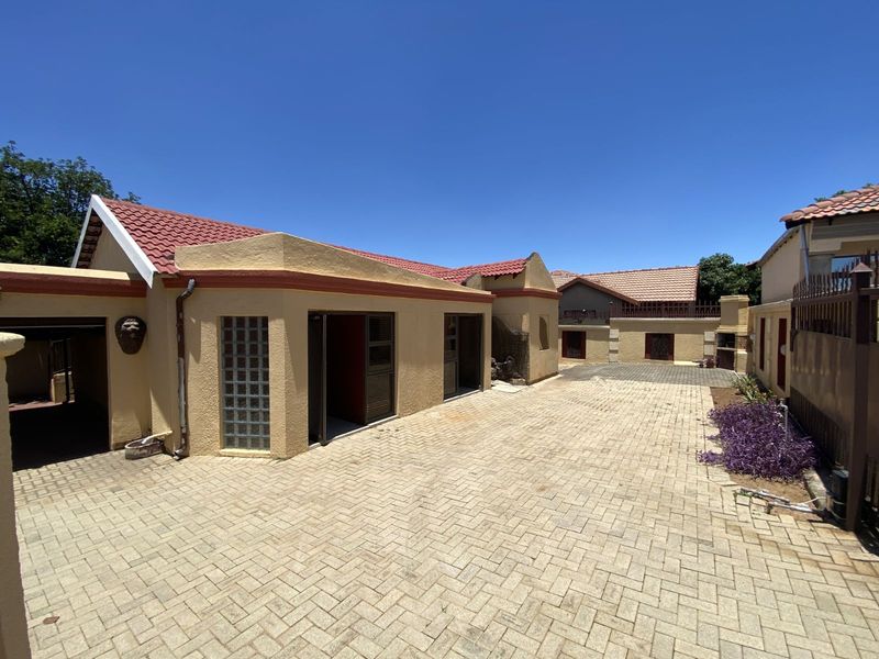 Live and work in Tlhabane West near shops and schools, with business rights, a paved yard, three bedrooms, one bathroom and four covered parking.