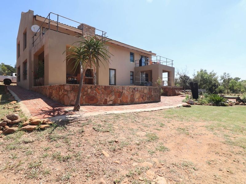 Escape to a private Buffelspoort bushveld retreat with dam views and balconies, ideal for holiday rentals or family living; self-catering units, three ensuite bedrooms and double garage.