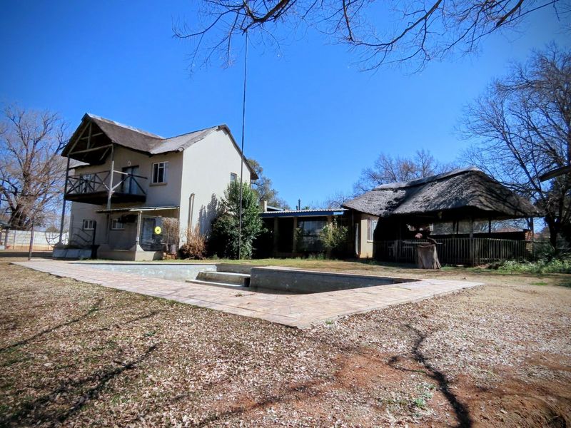 Rural entertainer's retreat 12 km outside Ventersdorp with two homes, 5 ha pasture, 1.8 ha water rights and borehole — eight bedrooms, four bathrooms.
