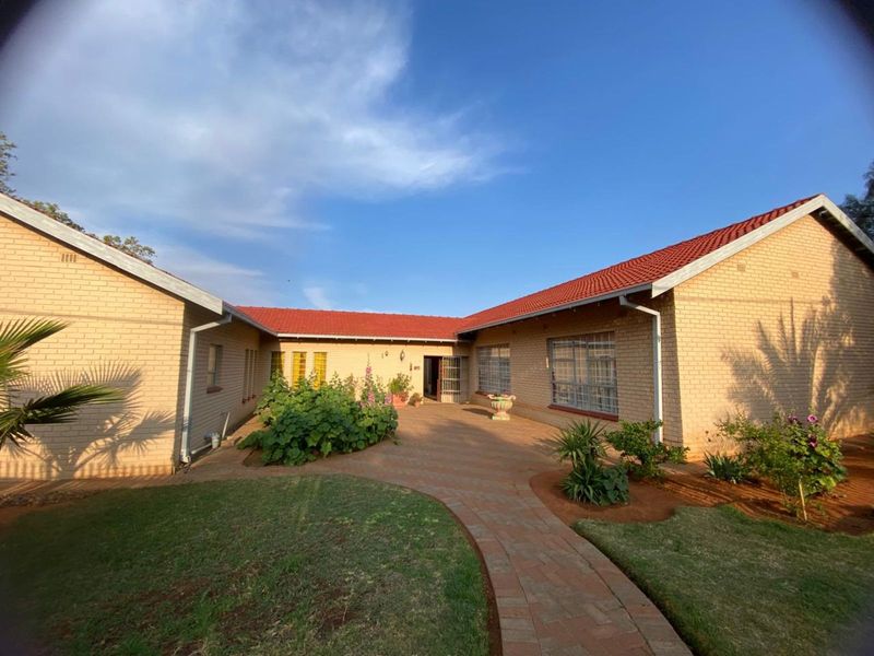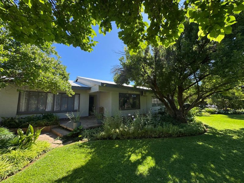 Relaxed, secure family living in Barkly West with an expansive tree-filled garden fed by a borehole and irrigation, pool and braai area — four bedrooms, two bathrooms, plus flatlet.