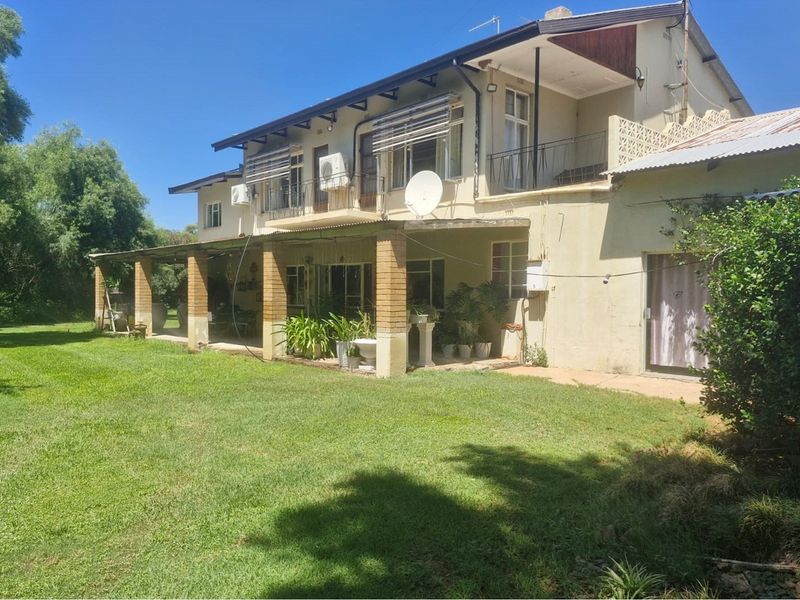 Riverside retreat on the Vaal, 15 km from Douglas — perfect for entertaining with open-plan living, veranda and outside braai, five en suite bedrooms and 4 covered parking.