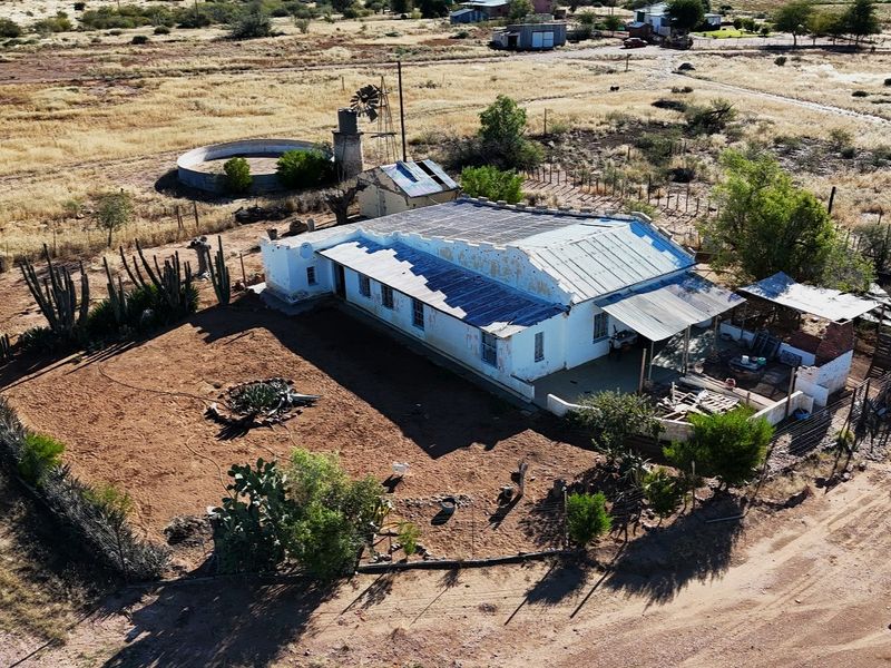 Escape to tranquil Karos just outside Upington — a 1.1ha smallholding with reservoir dam and canal water, renovation-ready 200m² main house; three bedrooms, one bath and single garage.