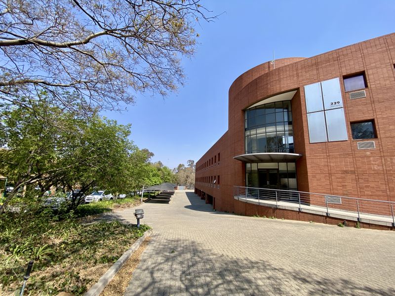 Establish a prestigious corporate HQ with flexible open-plan floors and high visibility in Waterfall Office Park, Vorna Valley, near Mall of Africa; includes basement entertainment/bar, aircon, and 142 parking bays.
