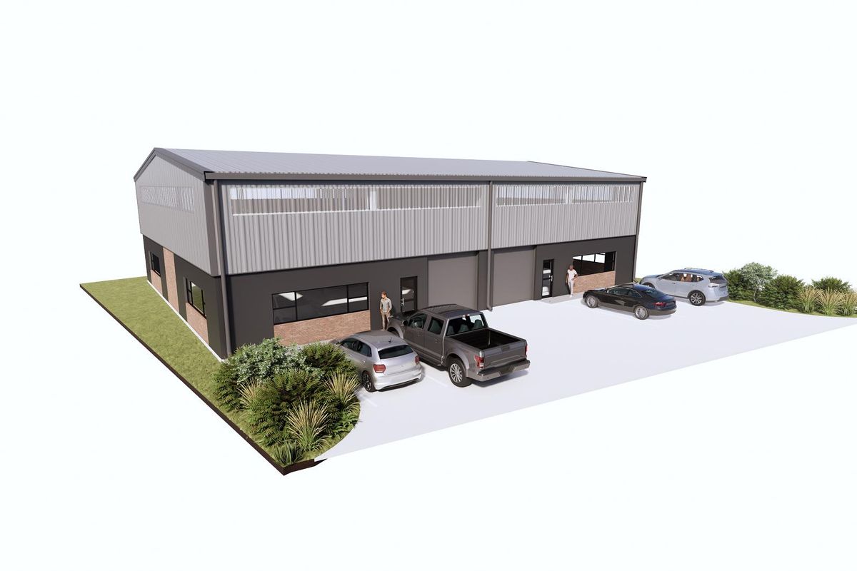 The development includes high-clearance roller doors, secure perimeter fencing, and space for vehicle access, loading, or outdoor storage. The wide street frontage allows for good visibility and future signage opportunities.