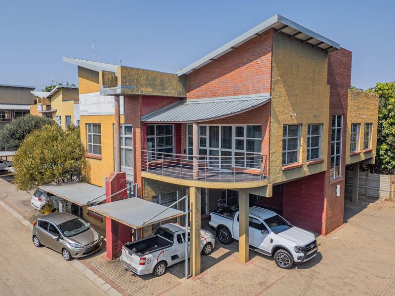 Elevate your corporate presence in Bendor, Polokwane, with high-visibility, turnkey double-storey offices and a private outdoor entertainment area; ideal for clients and staff, includes four bathrooms.