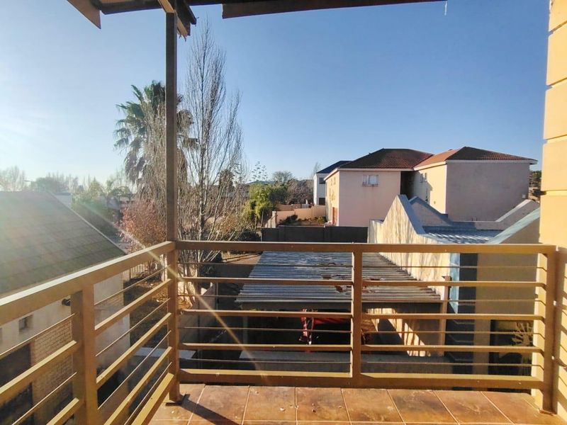 Enjoy low-maintenance secure living in popular Langenhoven Park, Bloemfontein — adaptable double-storey with loft office and private garden. Three bedrooms, two bathrooms, double garage.
