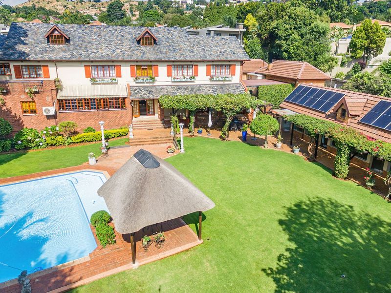 Relaxed, refined family living in Upper Bedfordview's secure, tree-lined enclave, with Italian-inspired charm, marble floors and a mature private garden with heated pool.