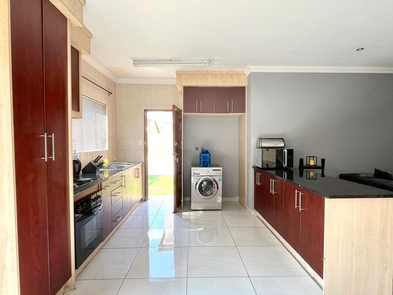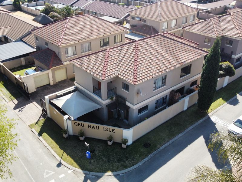 Family-focused, double-gated complex near Carnival Mall and Carnival City offering open-plan living, neat front garden and brand-new laminated bedroom floors; includes double automated garage, three bedrooms and three bathrooms.