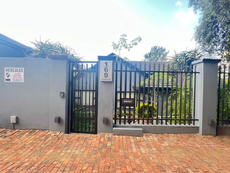 Entertainer's townhouse on prominent Columbine Avenue, close to schools, corporate offices and shopping, with a cozy lapa and garden — three bedrooms, 2.5 baths, double covered parking.