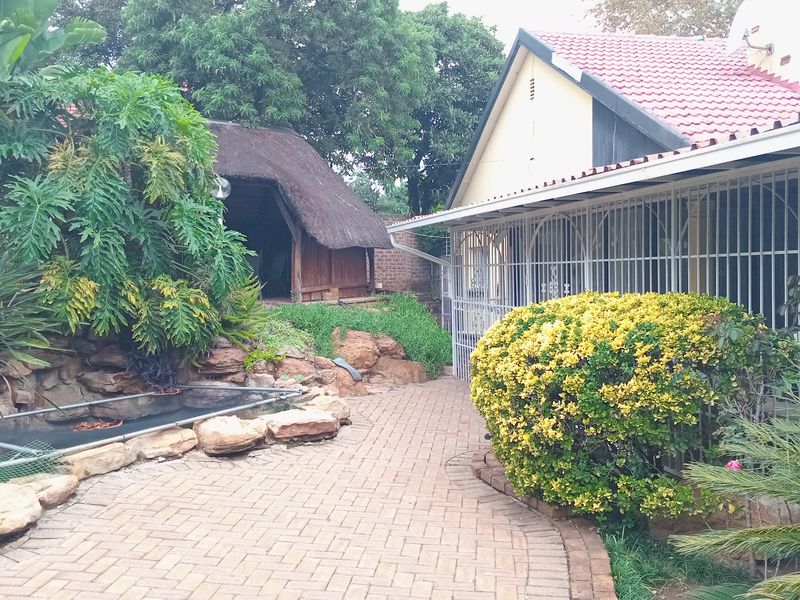 Entertainer's oasis with pool, lapa and fitted bar, set on a quiet, secure corner stand with established garden and borehole; includes two bedrooms, three bathrooms and double garage.