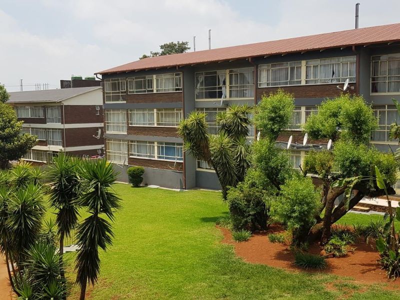 Effortless commuter living in a secure, well-kept complex within walking distance of the Gautrain — refreshed second-floor unit with communal pool, two bedrooms, one bath and covered parking.