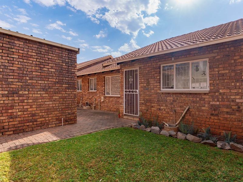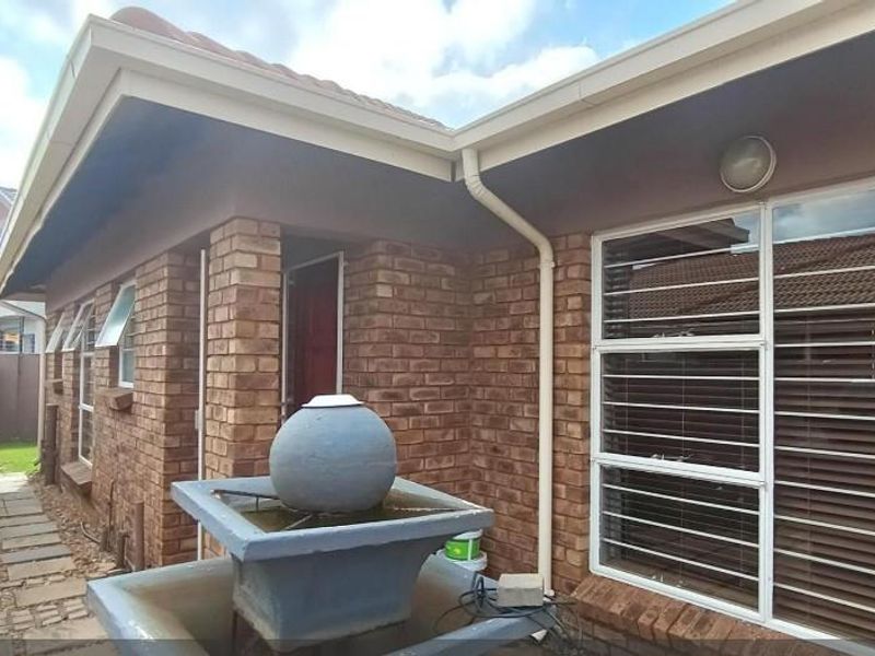 Relaxed family living in a sought-after secure complex with peaceful surroundings, private garden and covered patio with built-in braai—three bedrooms, full bathroom and double automated garage.