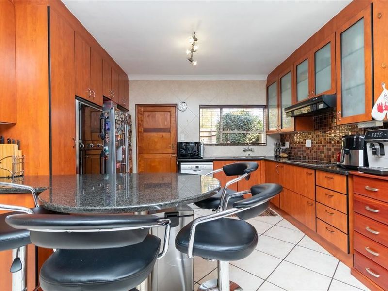 Easy family living near schools, shopping and highways in a sought-after neighborhood. Gourmet kitchen and patio with built-in braai, landscaped garden, three bedrooms, two bathrooms and double garage.