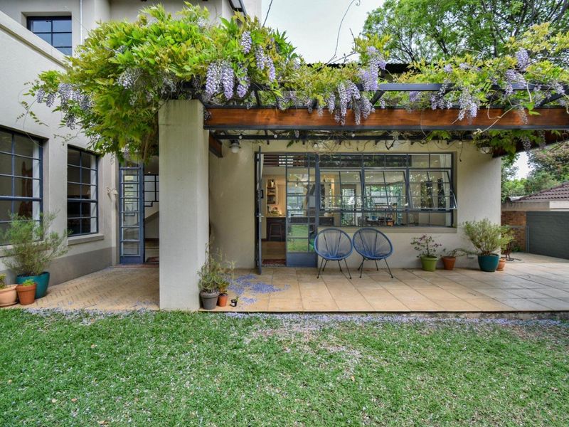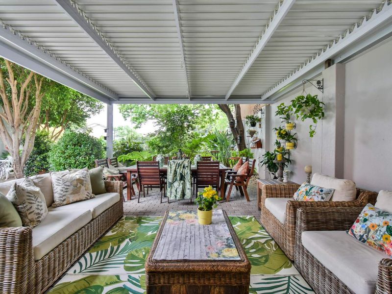 Entertainer’s haven in a sought-after mini gated complex—two living areas with built-in braai, jacuzzi and fireplace, renovated kitchen and enclosed pet-friendly garden. Three bedrooms, two bathrooms, double garage.