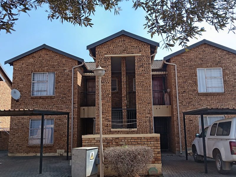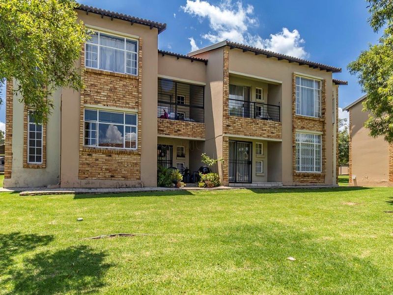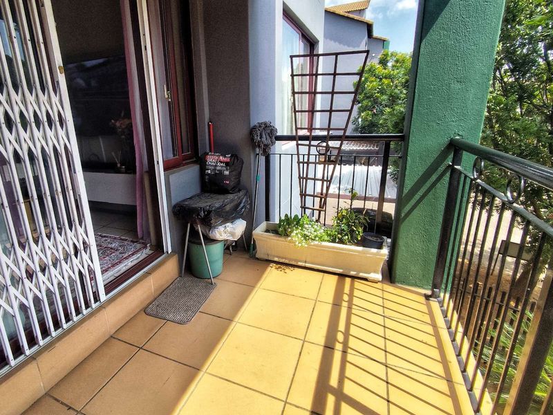 Relaxed suburban living in Honeydew, Roodepoort with leafy communal gardens and balcony ā versatile loft converted to a third bedroom, one bathroom, double carport.