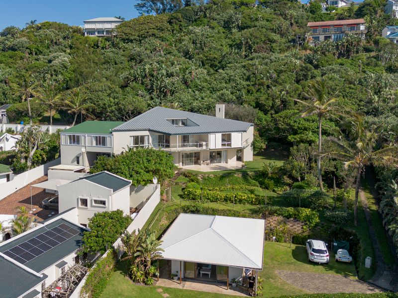 Refined coastal entertaining in Sheffield Beach near Salt Rock—rooftop terrace with panoramic sea views, tropical garden and pool; six-bedroom home with flatlet and double garage.