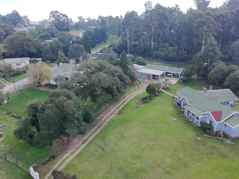 Create a relaxed Midlands Meander hospitality retreat on Giants Castle Road, minutes from Mooi River and Treverton College — 5ha with established tree-filled garden, veggie patch, cottages.