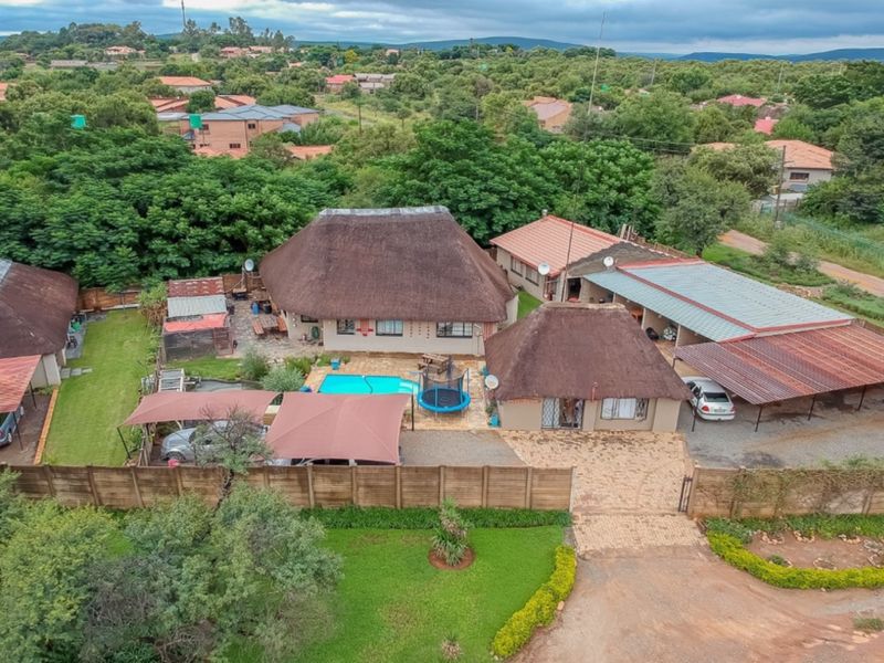 Entertainer's retreat on Olifantsnek Small Holding with easy R24 access and nearby amenities; open-plan living, gym/study, approved pool and outbuilding plan, five en-suite bedrooms and six garages.