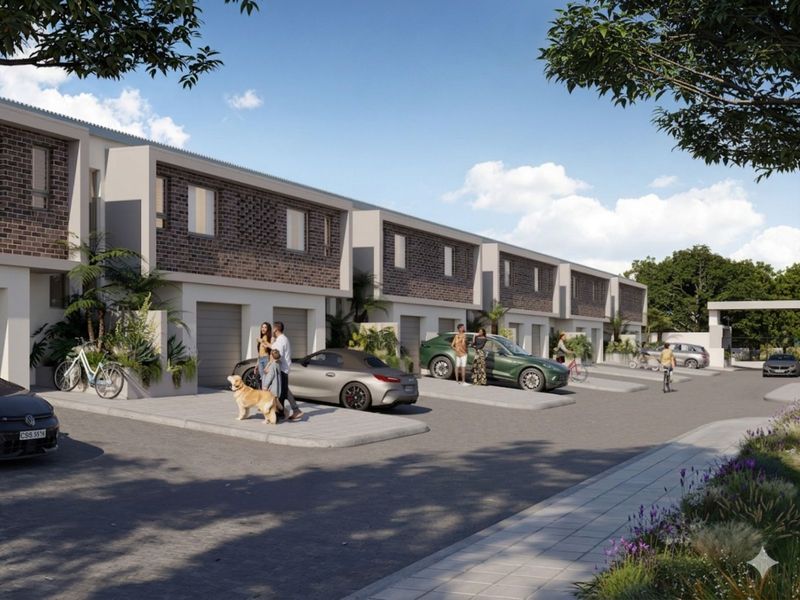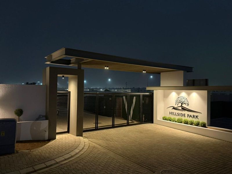 Lock-up-and-go living in Hillside Park, Heiderand — walk to the mall and schools, secure pet-friendly estate with private garden and waterfall-island designer kitchen; three beds, two baths, garage.