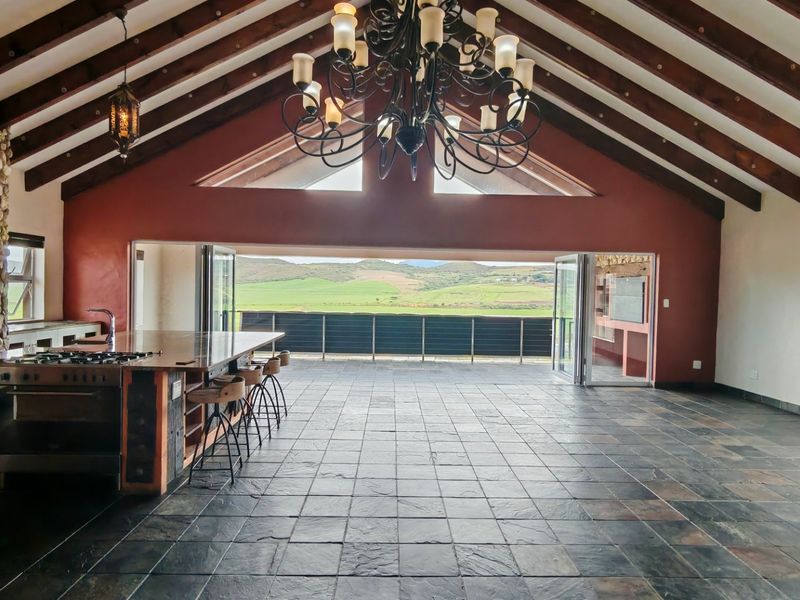 Relaxed country living with panoramic farm views and airy entertaining spaces; open-plan farm kitchen and undercover balcony with built-in braai. Three ensuite bedrooms, study/entertainment room, two single garages.