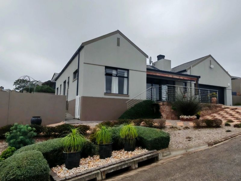Coastal-mountain living in Reebok, Mossel Bay with easy access to George Airport and beaches; open-plan entertainer’s home with balcony braai and panoramic mountain views. Three beds, four baths.