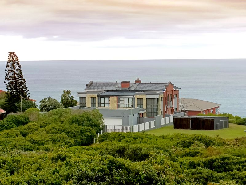 Coastal lifestyle and investment in quiet Reebok between George and Mossel Bay, sweeping sea views and infinity pool merging with the ocean. Two duets, 8 beds, 6 baths.