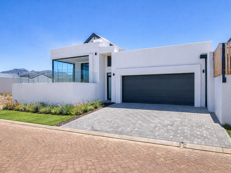Tailor-made Winelands living in Mzuri Estate—exclusive, secure community minutes from vineyards and top schools; designer kitchen, indoor–outdoor flow, panoramic mountain and vineyard views. Three beds, 2.5 baths, double garage.