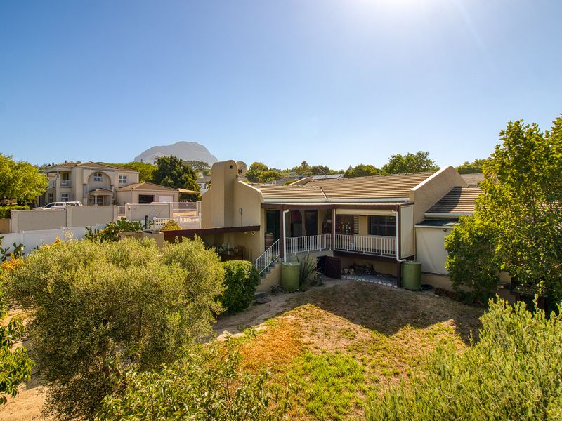 Effortless indoor-outdoor entertaining with Table Mountain views in Mzuri Estate, Somerset West; modern kitchen, sunroom and abundant storage — three bedrooms, two baths and double garage.