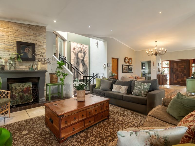 Embrace creative rural living in Sir Lowry’s Pass, Helderberg — 10 minutes from Somerset West — Swiss timber lodges, treehouses, olive grove and distant ocean views; five bedrooms, five bathrooms.