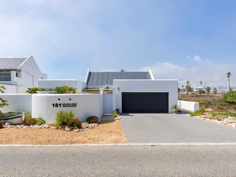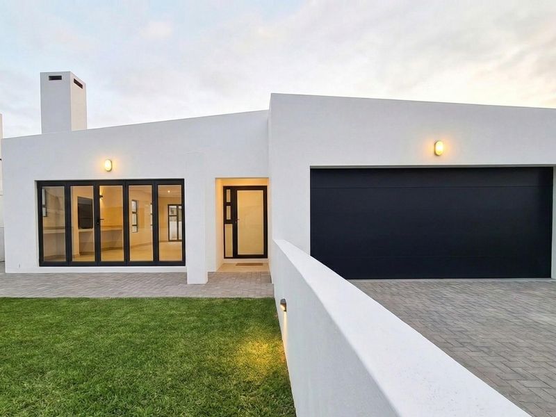 Beachside living with golf-course convenience in St Helena Bay, featuring a covered skylit patio for indoor-outdoor entertaining and a designer kitchen; three bedrooms, two bathrooms, double garage.