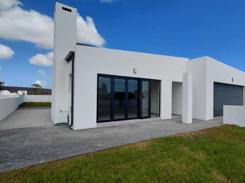 Walk-to-Golden-Mile West Coast lifestyle in Britannia Beach Estate — plot & plan homes with paved patio and built-in braai; three beds, two baths, double garage.