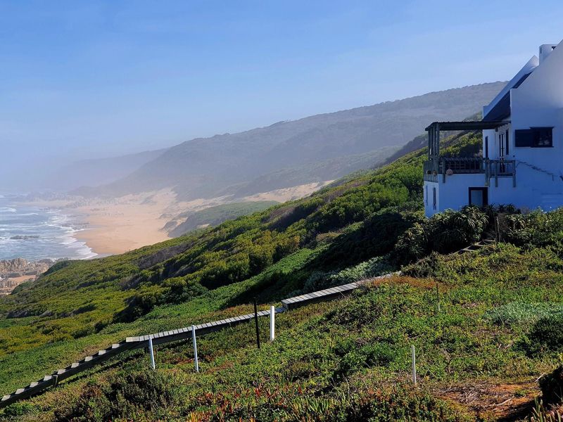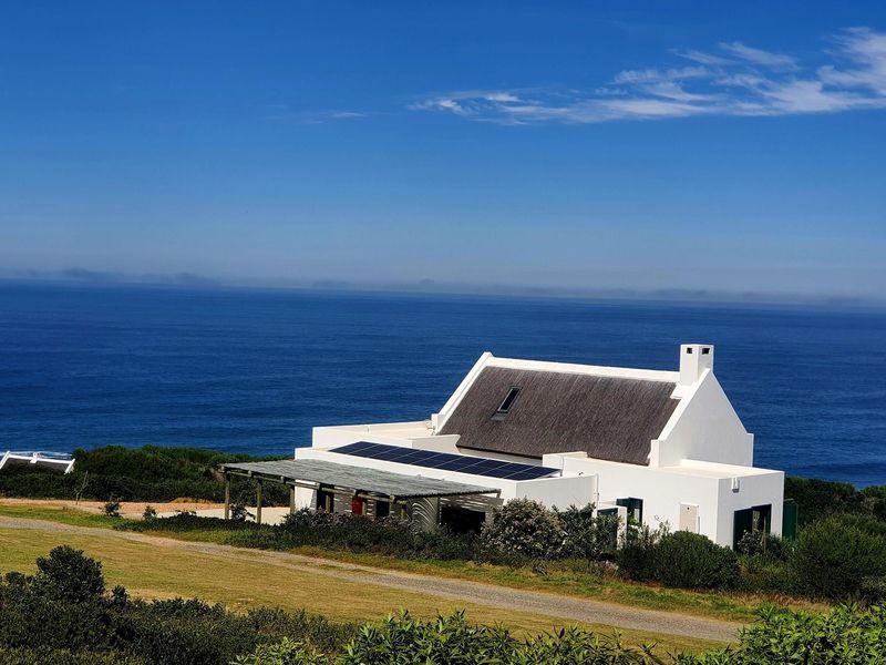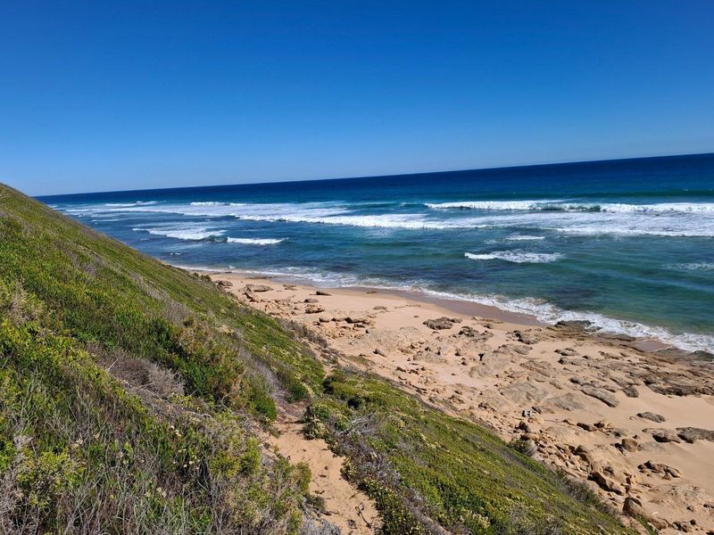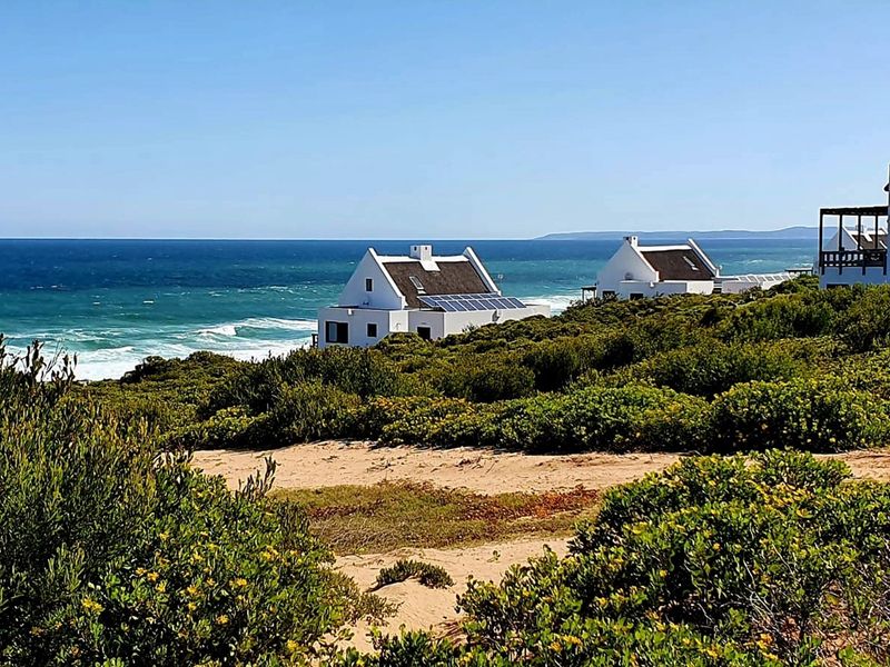 Secluded off-grid coastal living with panoramic ocean vistas in Fynbosstrand, between Stilbaai and Gouritzmond; private beach access, renewable-energy friendly 300 m² stand for bespoke Cape vernacular home.