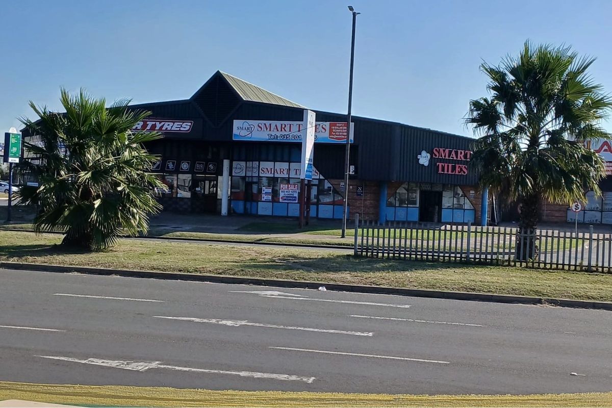 High-visibility retail space in Richards Bay CBD — corner intersection with dual street access, ideal for busy trading; high roof for tall stacking and two bathrooms.