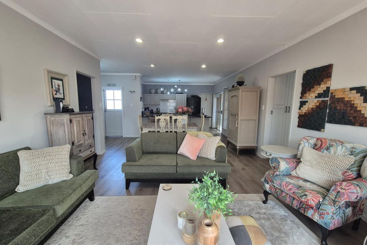 The open-plan living area leads to the outdoors with a sliding door, where you can sit and enjoy the afternoon sun or relax, sipping your morning coffee. The kitchen boasts a modern gas stove, ample work surfaces and a large pantry. The double garage, beautifully maintained garden, back-up water tank, additional safety features and overall flair of this property will leave nothing but for your to ask.... where do I sign?