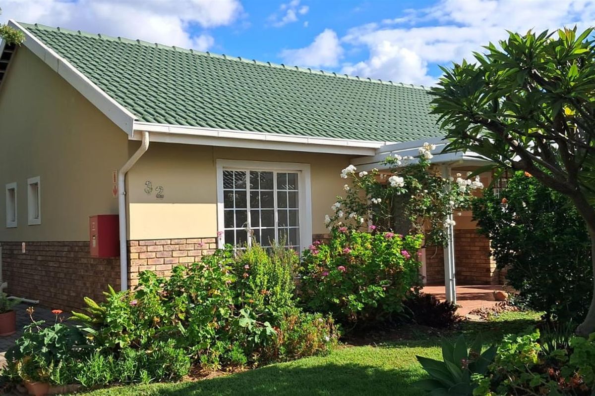 Peaceful retirement living in secure Berghang Village with on-site library and maintained gardens; two-bedroom, one-bath townhouse features open-plan living, louvre-deck patio and single automated garage.