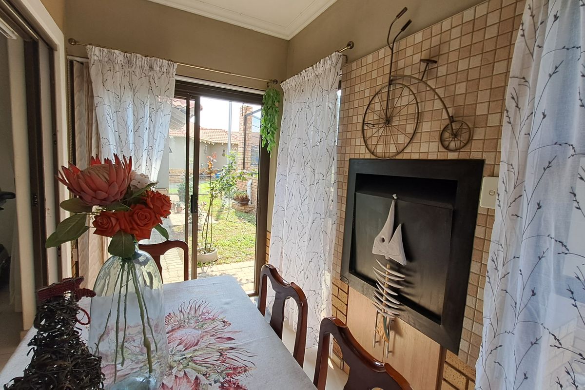 Relaxed two-bedroom retirement living in a secure community with scenic dam and onsite nurse; sunlit enclosed braai-room, private garden and automated garage for effortless entry.