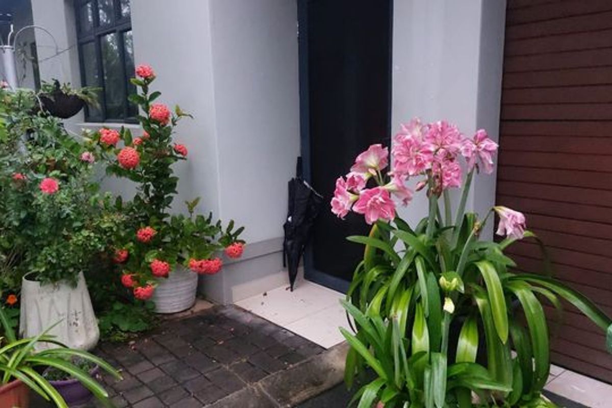 Relax in secure, social retirement living with an established garden and veranda braai — walking distance to the golf clubhouse, pool and courts; three bedrooms, two baths, double garage.