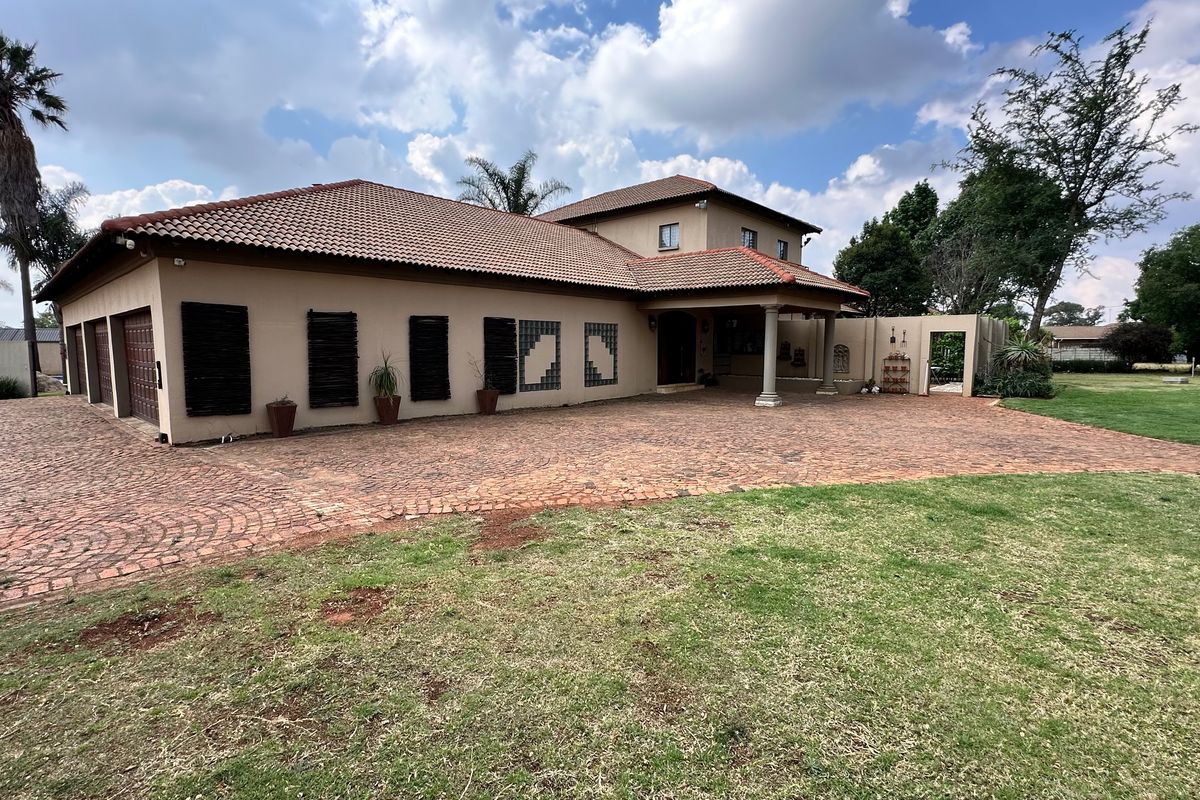 This very neat family home has everything a discerning homeowner can ask for. It can be a spacious family home, a versatile business premise for the small entrepreneur or a profitable investment for the investor. The main home has two lounges, 2 dining rooms and a seperate games room completing the living area of the home. This is complemented by a huge entertainment area with a billiards room, separate bar, and a lounge area with built-in braai. It links via stacking doors with the swimming pool and covered jacuzzi and huge back yard ideal for open air entertainment. The kitchen with it’s gas stove is complemented by a fitted laundry and walk-in pantry. The 5 spacious bedrooms are all luxurious with 2.5 bathrooms, one a main-en-suite with a fully fitted dressing room and double shower. Upstairs is a huge pajama lounge, a large office and a full bathroom and a small balcony. This can easily be converted to a guest suite or home office. The 3 double garages with internal access can easily also be converted to business or residential facilities. Outside is a totally separate 2 bedroom cottage with its own entrance, yard and carport, ready to be rented out or used for the extended family.
