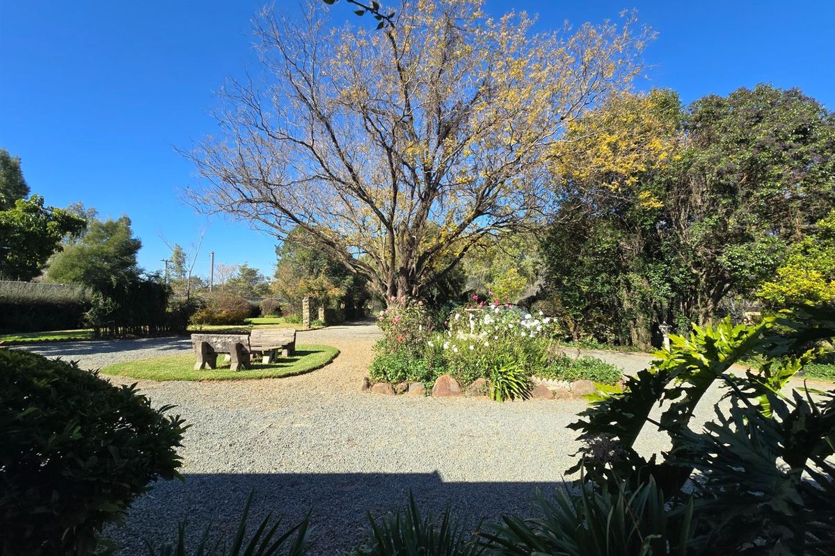 Property Highlights: • Four spacious bedrooms • Two neat bathrooms • Warm country-style kitchen with gas stove • Separate scullery • Cozy library • Dedicated home office/study • Extended covered patio for year-round entertaining • Sparkling swimming pool • Entertainment area • Storage space • Helper’s accommodation with bathroom • Three garages plus carport • Stables and lunging ring • Borehole and water tanks
