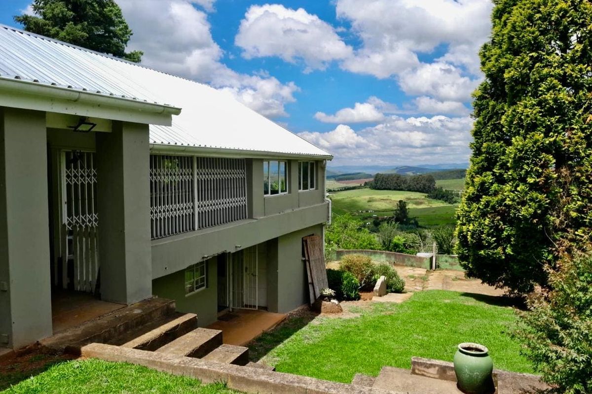 Embrace relaxed Midlands smallholding living above Bosch Hoek Golf Estate with sweeping valley views, pool and farm sheds — four-bedroom main house plus separate two-bedroom cottage, borehole water.