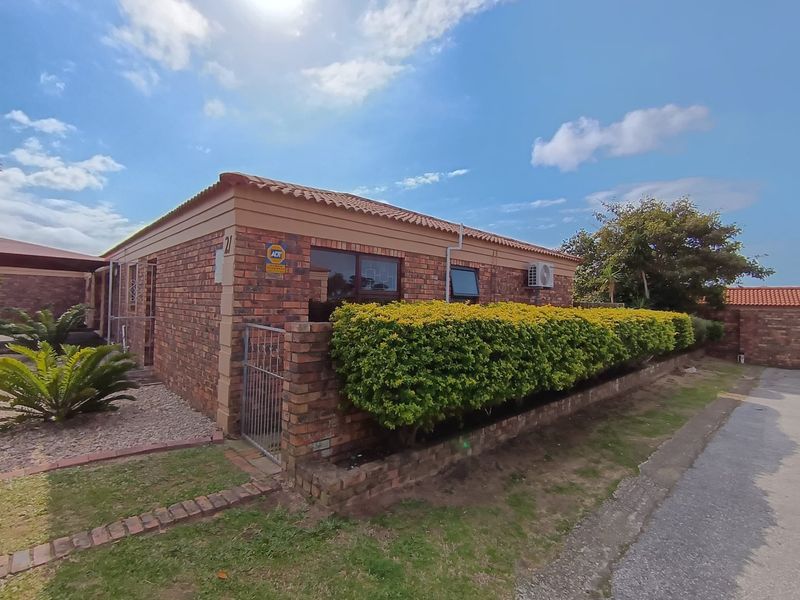 Secure Humewood duplex offering lock-up-and-go coastal living minutes from beaches and The Boardwalk — private pet-friendly garden, two patios with built-in braai, solar and underfloor heating.