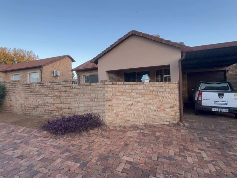 Family-friendly townhouse in central Sasolburg, close to amenities, offering relaxed indoor-outdoor living with a serene garden and patio; three bedrooms, two bathrooms, and secure gated community.