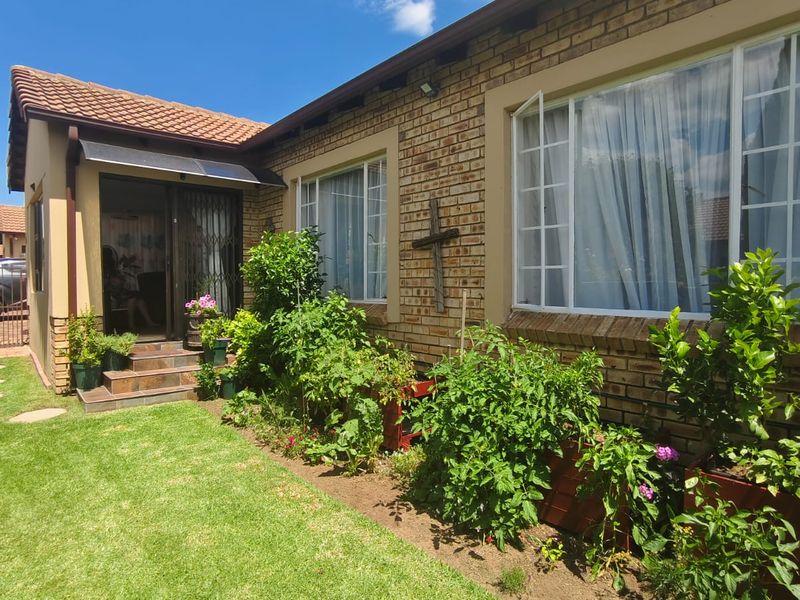 Family-friendly townhouse in central Sasolburg, close to amenities, offering relaxed indoor-outdoor living with a serene garden and patio; three bedrooms, two bathrooms, and secure gated community.