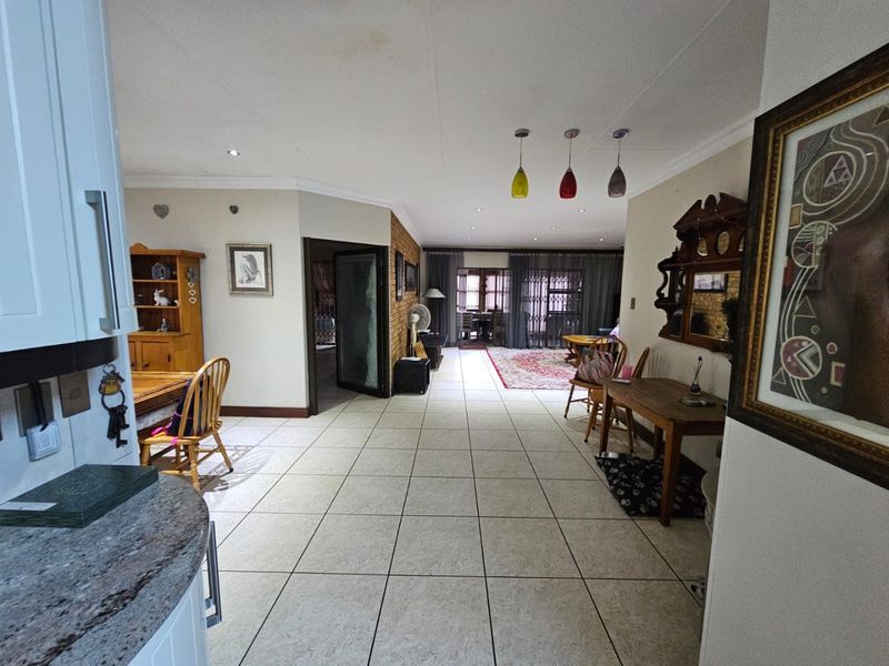 Entertain effortlessly with open-plan living in Vaalpark, close to schools and shops — private garden with boma and built-in braai; three bedrooms, two bathrooms, double garage plus carport.