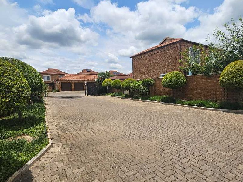 Low-maintenance estate living with spacious outdoor entertaining in Theresapark, featuring a large private garden, three bedrooms, two bathrooms and a double garage close to amenities.