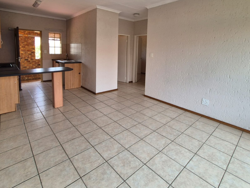 Easy suburban living on the Dayanglen–Hughes border, steps from East Rand Mall. Ground-floor unit with open-plan kitchen and rental potential of about R6,200; two beds, one bath, covered parking.