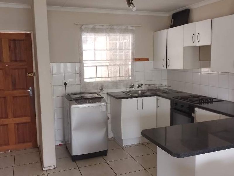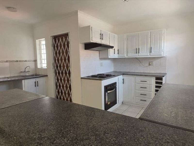 Lock-up-and-go living in a secure complex with 24-hour security and controlled entry, near amenities. First-floor townhouse with well-equipped kitchen, open-plan lounge, three bedrooms, one bathroom and covered plus open parking.